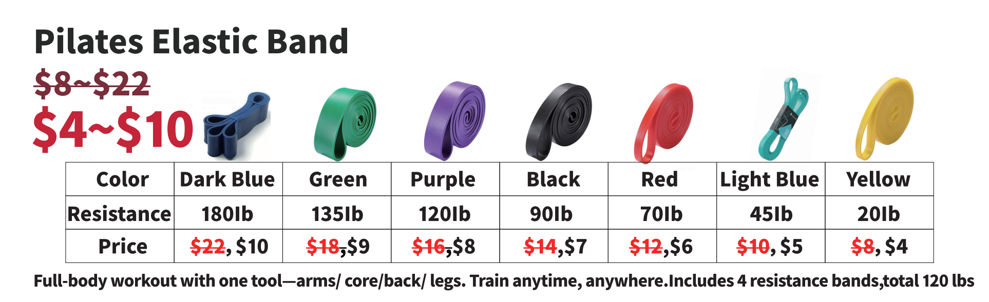 7 Resistance Levels 20-180 LBS: Our Pull Up Resistance Band Set includes 7 bands color-coded for different resistance levels: Yellow (20 lbs), Light Blue (45 lbs), Red (70 lbs), Black (90 lbs), Purple (120 lbs), Green (135 lbs) and Dark Blue (180lb) . Ideal for users weighing 90 lbs to 300+ lbs
